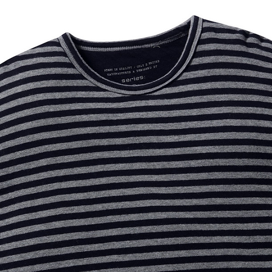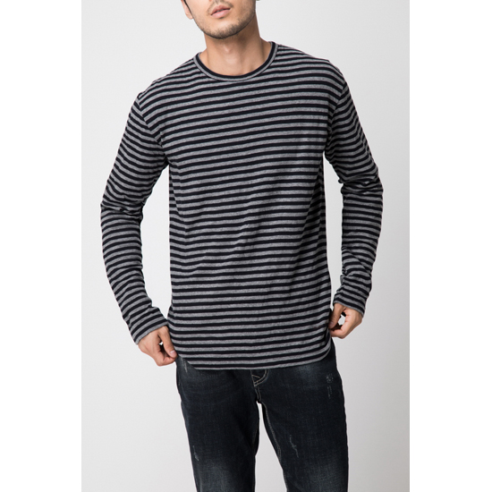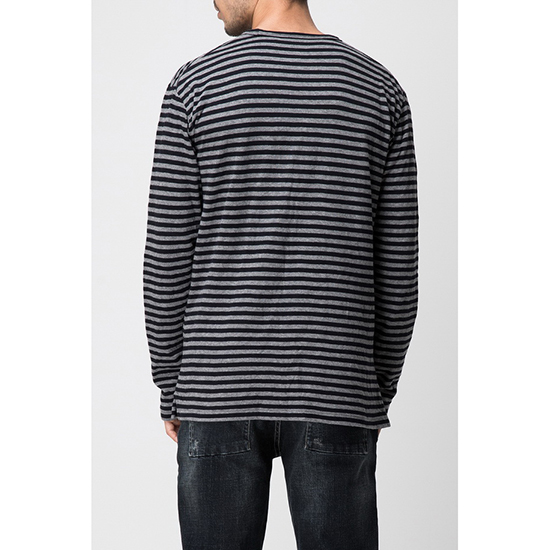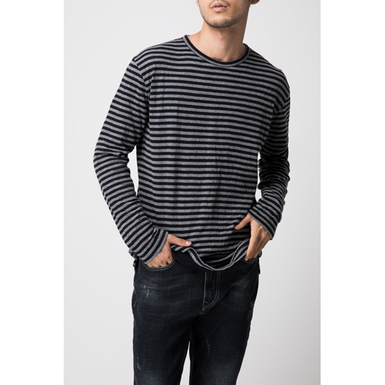 - 모노 스트라이프 패턴 디자인의 남성 티셔츠.