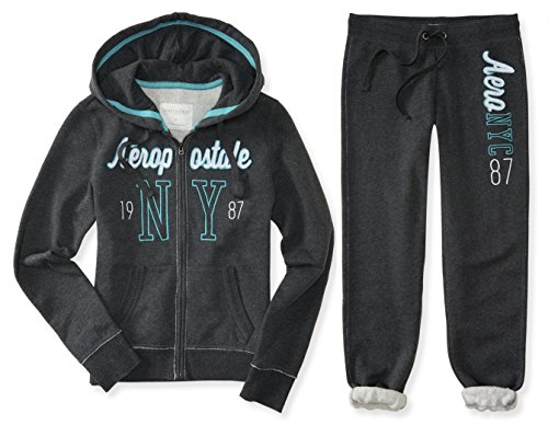 Aeropostale Womens Hoodie and Sweat Pants 2 Piece Set, Hoodie Model 7493: Relaxed fit, 24 inch length, Sweats Model 7497: Cinch style (ankle length-inseam 30.5 inches with 8 inch rise), slim fit, You will receive one set - same size hoodie and pantsFeature
