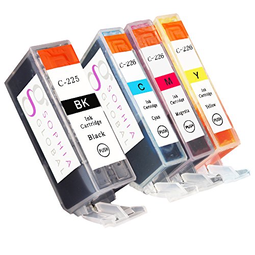 Sophia Global Compatible Ink Cartridge Replacement Set for Canon PGI-225 CLI-226 (Pack of 4: 1 PGI-225 Large Black, 1 CLI-226 Cyan, 1 Magenta, 1 Yellow)