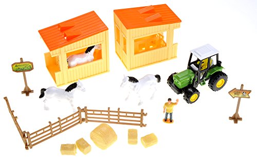 -. Feature : Playset with horses, tractor, and lots of farm accessories / Great for children who love horses and tending to them / Includes other farm accessories and farmer figure to help maintain the farm / Brings hours of imaginative fun for kids that love the farm life / Made out of thick hard plastic for more durability