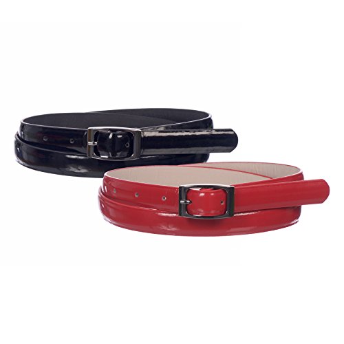 Binding : Apparel Product Description Two belts included: Red Black. Belts are shiny and glossy for a fashionable designer look. Belt width: 5/8". All sizes are measured from beginning of strap to 3rd hole from tip. It is recommended you order one size up from your pants size. 0