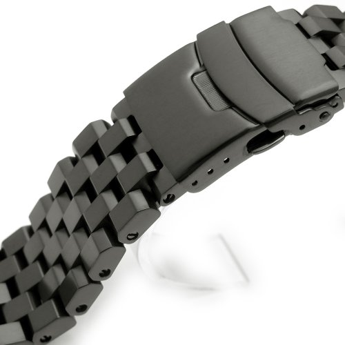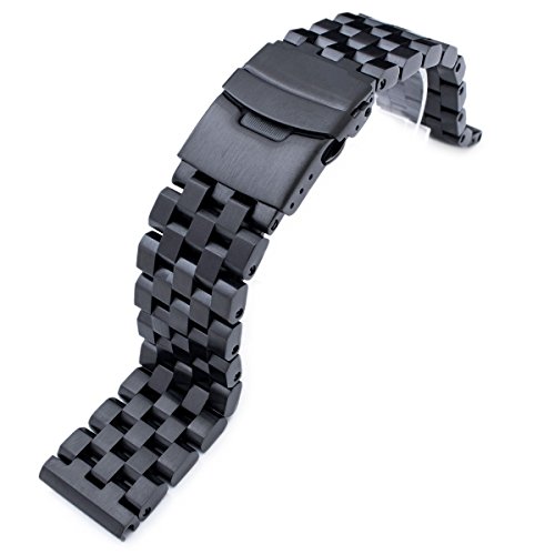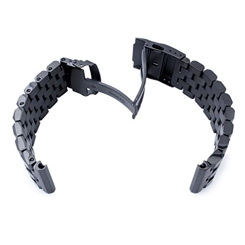 Studio : Taikonaut Publisher : Taikonaut Binding : Watch Product Description Item no. : SS202003BBK024 Lug width : 20mm Buckle : 20mm Buckle type / Finish : 316L Stainless Steel Double Flip-Lock Diver's Clasp with Push Button Overall Length : 180mm Max. length : 180mm Min.length : 105mm Spring bar hole dia. : 2.5mm (Spring Bar included) Design to fit : 20mm lug watches Material : 316L Solid Stainless Steel Color / Finish : PVD Black Net Weight : about 116g Lug end style : Straight End Adjustment type : Screw fixed Link 3 Micro hole type adjustment