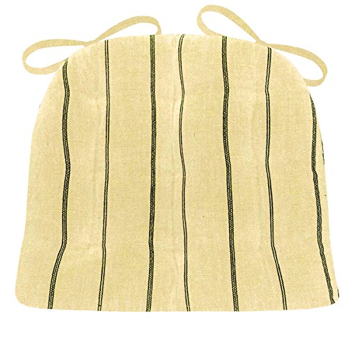 -. Title : Dining Chair Pad with Ties - Fritz Natural Homespun with Black Stripe - Reversible, Tufted, Latex Foam Fill - Made in USA