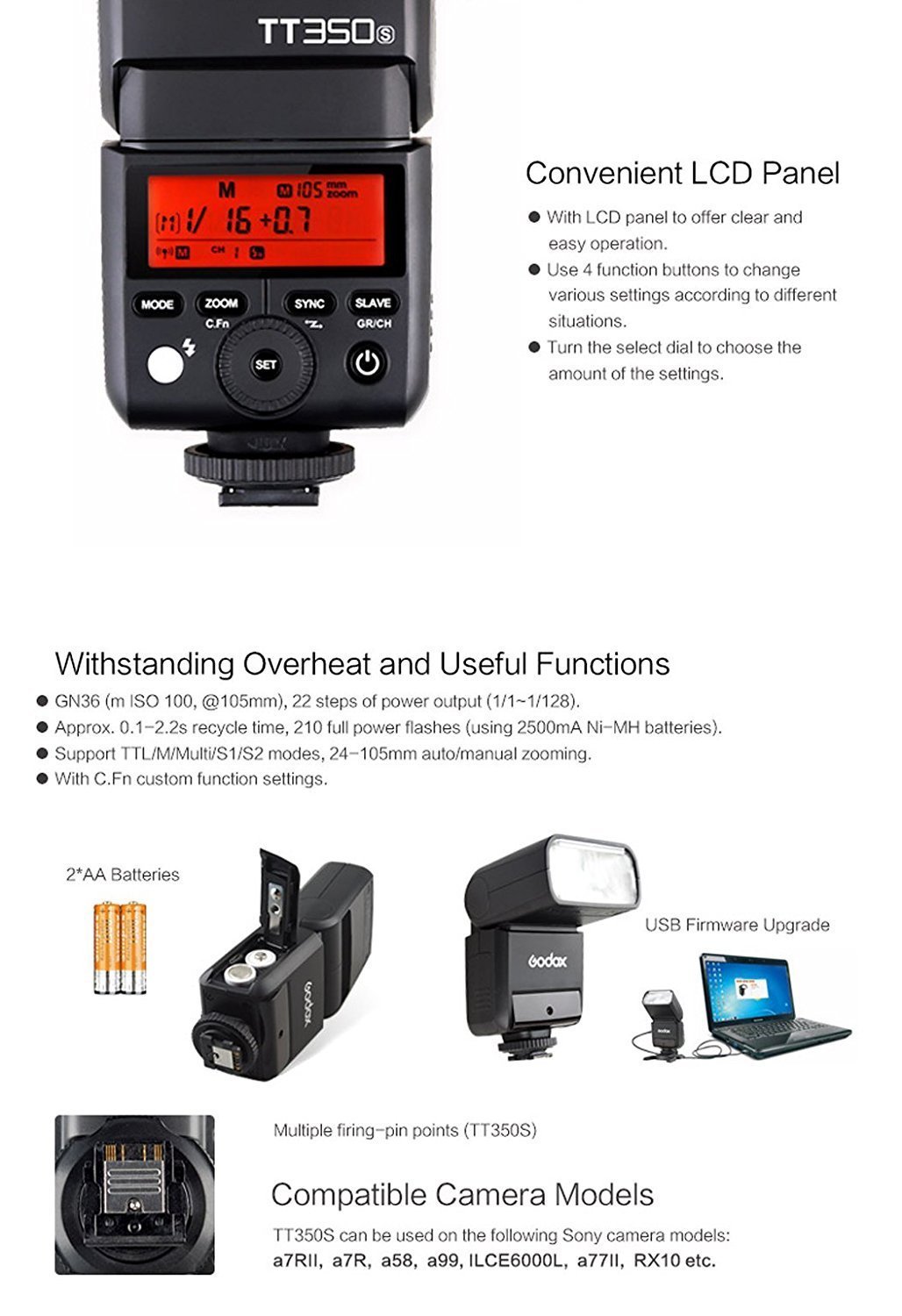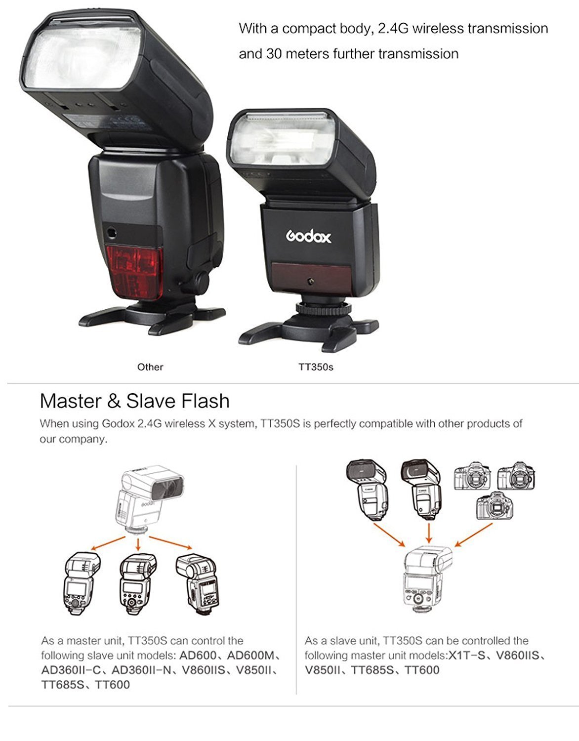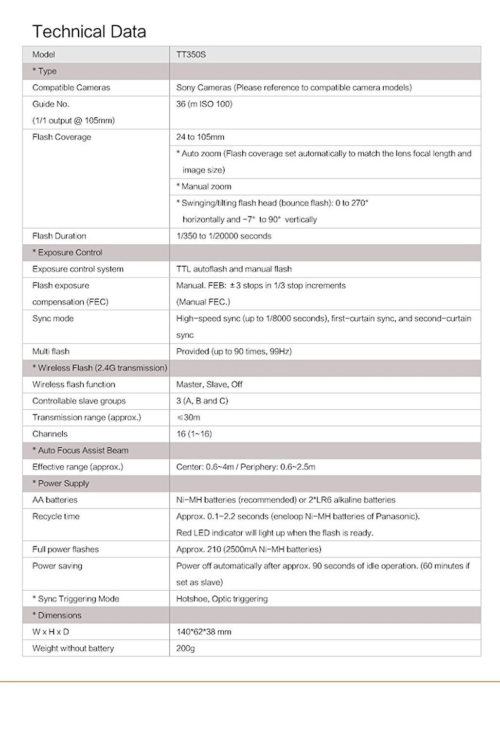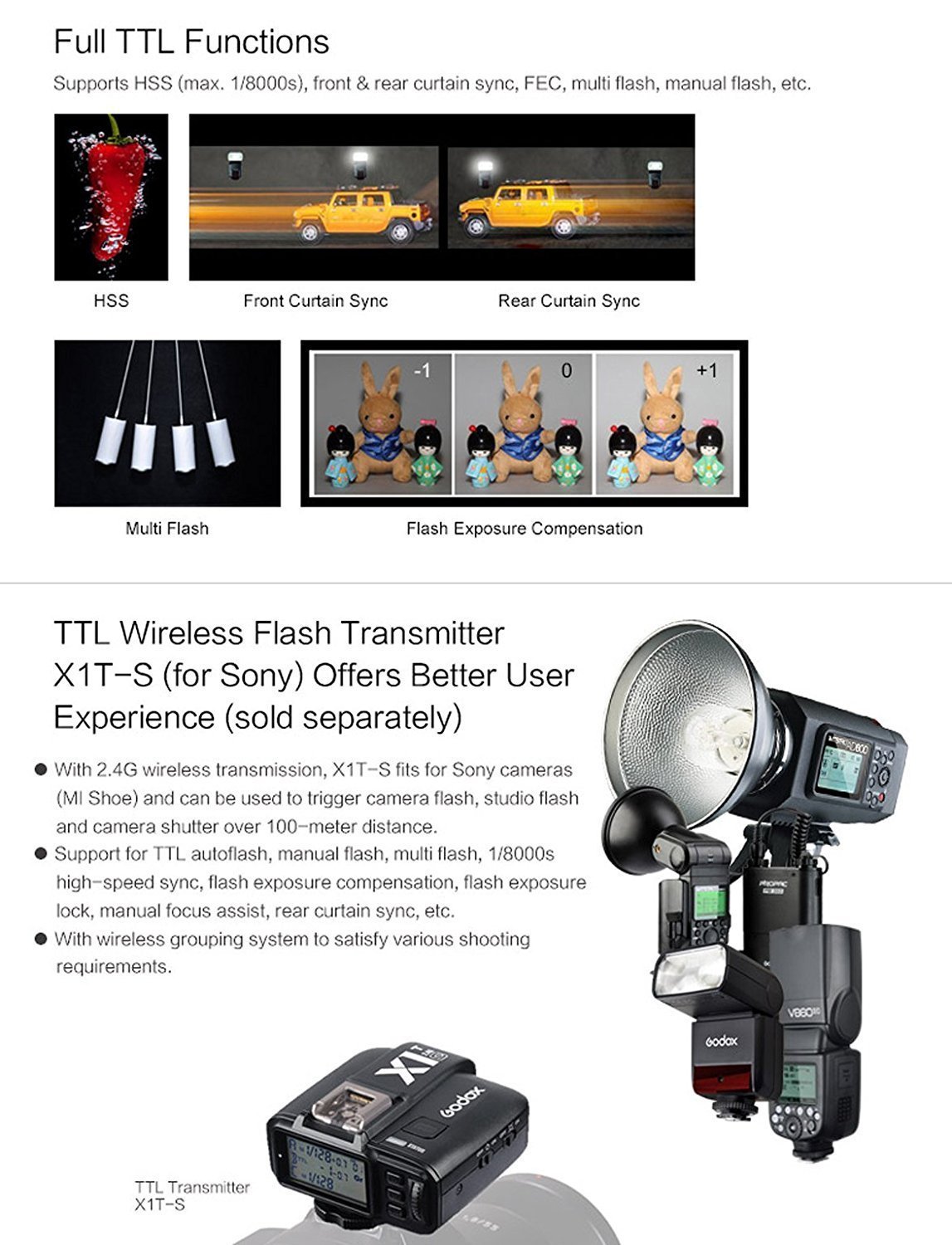 ● Synchronized mode: High speed sync (maximum 1/8000 second), first curtain sync and second curtain sync