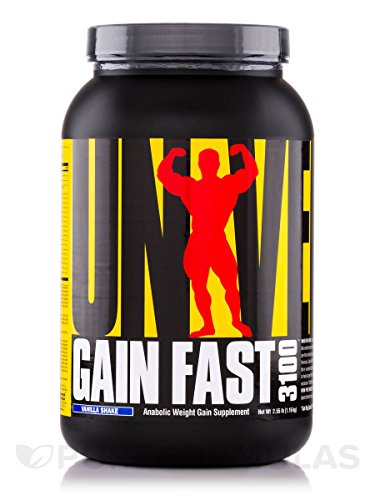 -. Binding : Health and Beauty -. Brand : Universal Nutrition -. Department : men, women -. EAN : 0039442012159 -. Feature : Anabolic Weight Gain Supplement / 'Get Big Quick' Formula / Engineered for Maximum Gains in Mass & Size / High in Protein & Complex Carbs / Who We Are: Universal Nutrition has been providing cutting edge and staple nutritional supplements to bodybuilders and hard training athletes the world over since 1977 -. IsAdultProduct : 0 -. Label : Universal Nutrition -. LegalDisclaimer : Made in a GMP facility that uses milk, soy, egg and peanuts. Keep out of reach of children. Before beginning any program, consult your health care practitioner. Note: Do not use as your sole source of calories. -. Manufacturer : Universal Nutrition -. MPN : 1215 -. PackageQuantity : 1 -. PartNumber : 1215 -. ProductGroup : Health and Beauty -. ProductTypeName : HEALTH_PERSONAL_CARE -. Publisher : Universal Nutrition -. Size : One Size -. Studio : Universal Nutrition -. Title : Universal Nutrition Gain Fast 3100 Vanilla Shake 2.55 lb (1.16 kg) -. UPC : 039442012159