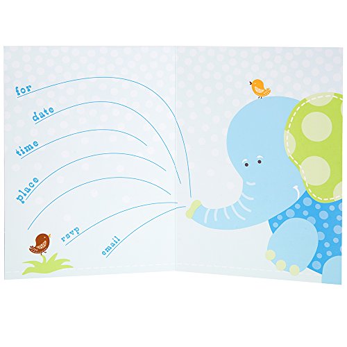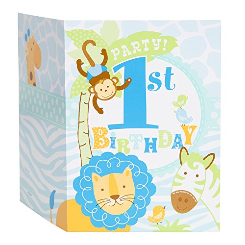 - Package of 8 Blue Safari 1st Birthday Invitations
