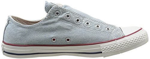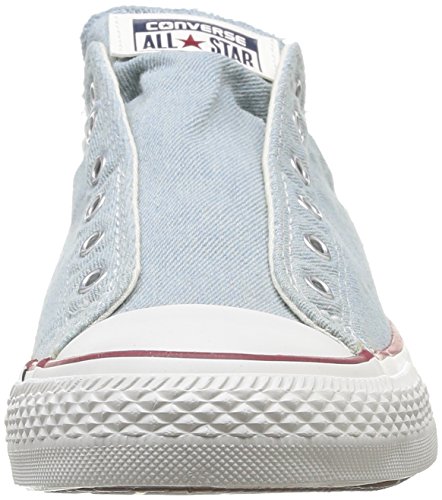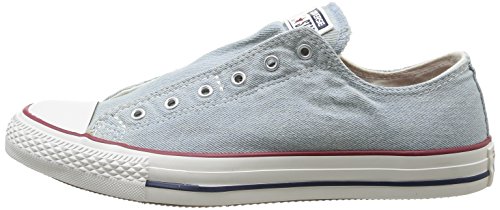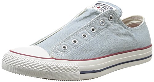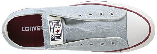 The Converse Chuck Taylor All Star Slip offers our iconic oxford silhouette, but renders laces optional with an effortless, slip on design. Easy on, easy off. The washed canvas gives it a well-worn, lived-in look. The classic All Star heel patch, vulcanized rubber sole, brushed metal eyelets, reinforced rubber toe cap, padded footbed and cultural authenticity remain in tact.Feature
