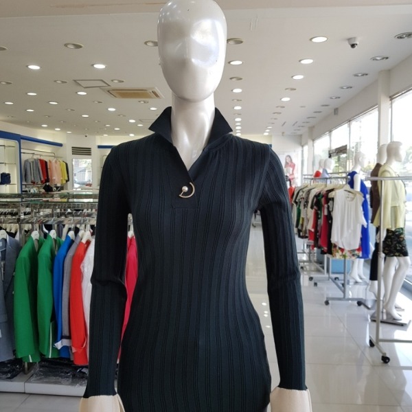 소매 배색 포인트 블러치 장식 골지 카라넥티-JA7F9-WSL560-그린
