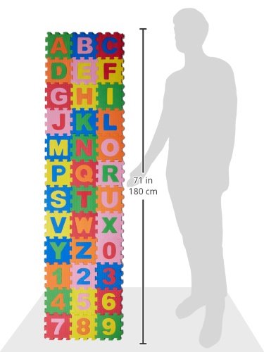 Give your child a fun, safe play area with these bright, ultra-soft EVA foam mat tiles from Dimple. Getting your child interested in letters, numbers and colors at an early age is important to their long-term education. And nothing makes learning more fun and accessible that a giant 36-Piece EVA Foam Play Mat that turns playtime in a truly interactive experience! Colorful, Soft, and Kid Friendly Crafted with nontoxic, high-density EVA foam, our tiles offer a cushioned play place full of bright colors and fun. Water, mold and mildew resistant, our creative puzzle lets kids learn letters and numbers, align them in order, and improve their reasoning, motor skills, hand-eye coordination, and even their visual sensory growth. Great for your home, classroom, or even daycare, get a puzzle mat today and watch your children thrive! Product Details: - 36-Piece Foam Mat Set
