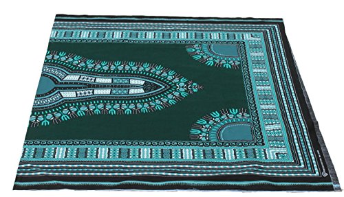 RaanPahMuang African Dashiki Colour Cotton Fabric Suitable for 1 Shirt Design, Phthalo Green