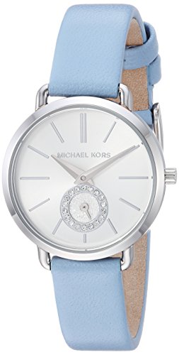 Michael Kors Watches Womens Stainless-Steel and Pale Blue Leather Portia Watch