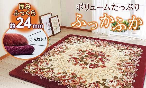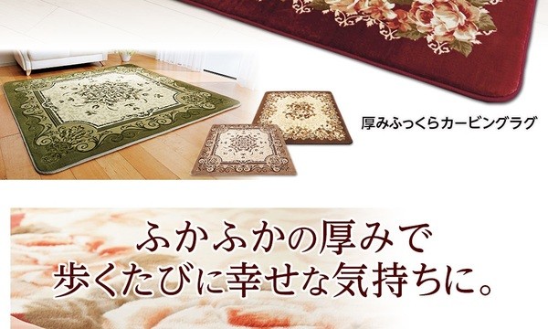 【商品名】厚みふっくらあったかカービングラグマット 【王朝ベージュ 2: 約180cm×180cm】 正方形/厚手