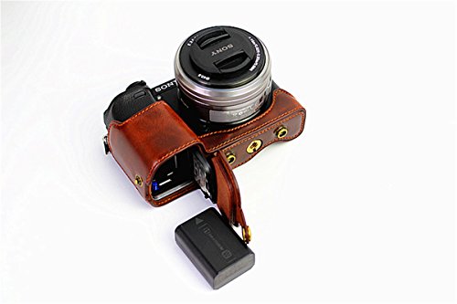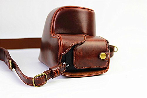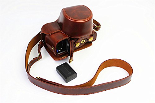 Hwota Handmate Premium PU Full Body Leather Camera Case Bag For Sony Alpha A6000 A6300 Fit 16-50mm Lens Neck Strap -Coffee