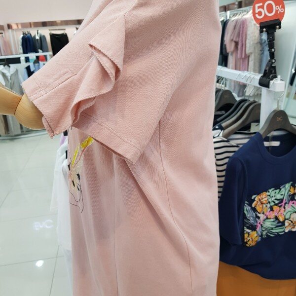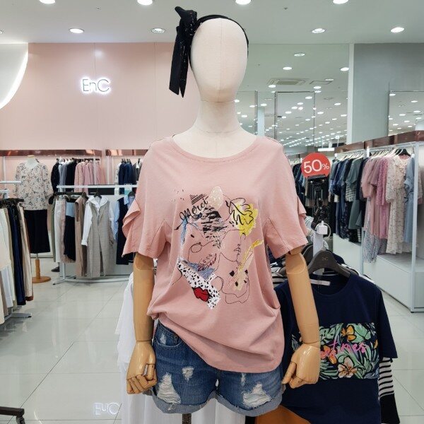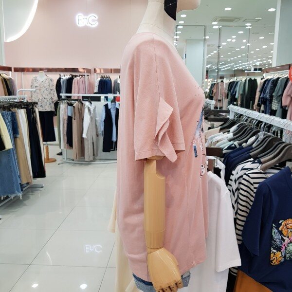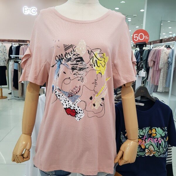 기본 면티에 세련된 프린팅과 소매의 프린트가 밋밋함을 덜어 편안하면서도 멋스럽게 입을수 있는 아이템