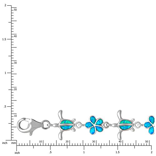 7" Sterling silver turtle & plumeria flower bracelet with simulated blue opal inlay. Platinum glazed finish to prevent tarnishing. Gift box included. From Honolulu Jewelry Company, Honolulu, HawaiiFeature