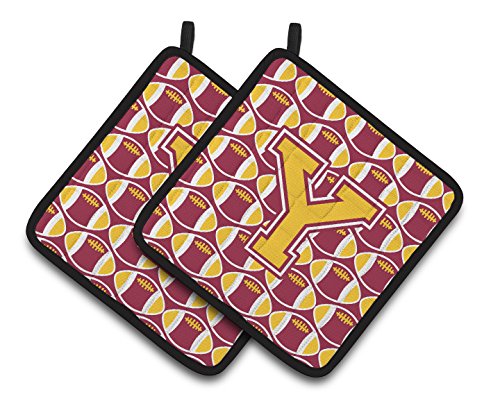 Caroline's Treasures Letter Y Football Maroon & Gold Pair of Pot Holders CJ1081-YPTHD, 7.5HX7.5W, Multicolor
