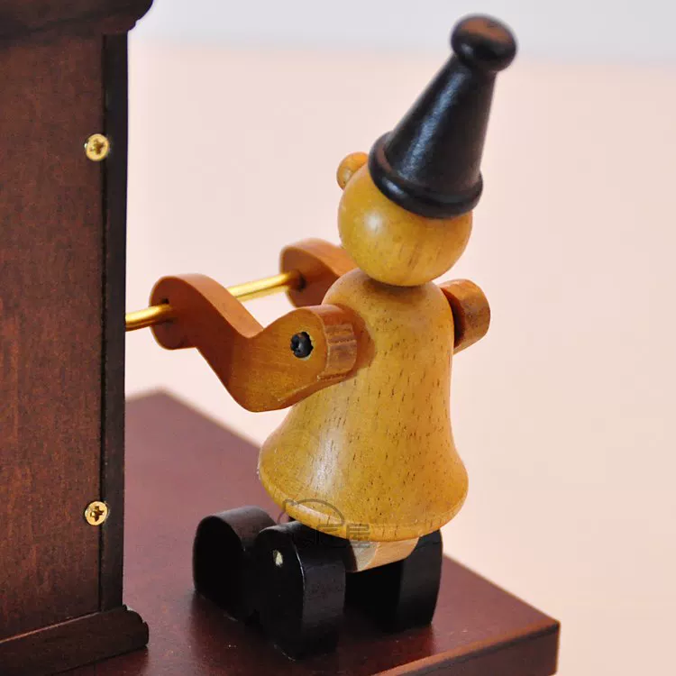 加上其他配件使一件木器工艺品做成手摇木偶音乐盒