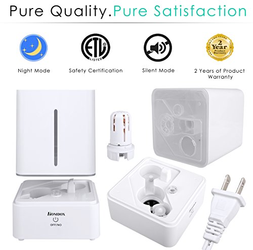 SAFE - The ultrasonic humidifier includes a Built-in Water Purifier that can eliminate the the bad water smell and suspended solids, Automatic Shut-Off Function when water used up