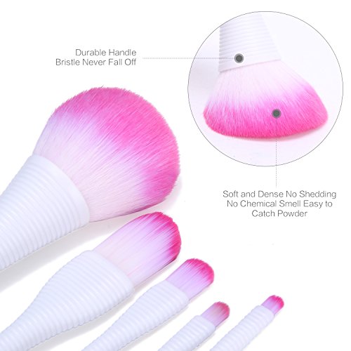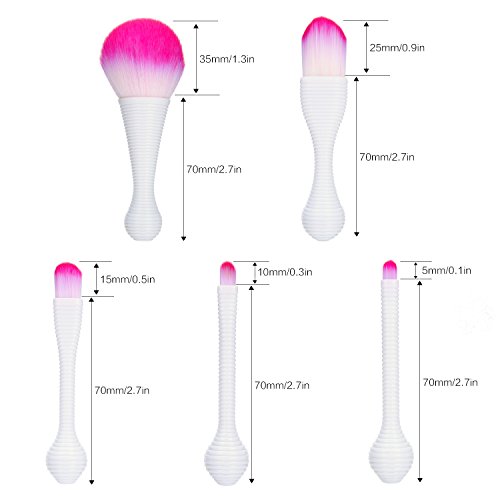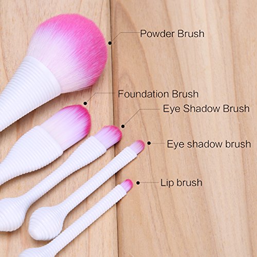 - 5pcs Brush Set, Satisfy Daily Needs: Powder brush, foundation brush, eye shadow brush for large area, eye shadow brush for small area, lip brush. Practical and enough for daily use of pro artists and beginners. No need to buy dozens of brushes and find most of them useless.