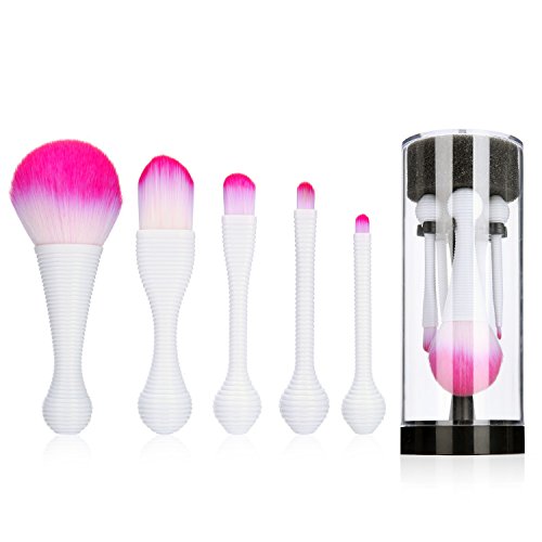 Lollipop Makeup Brushes Set, Silky Select 5pcs Professional Tiny Face Brush with Holder for Cosmetics Eye Shadow Lip Contour Foundation Brushes in Portable Travel Case for Easy Hang & Dry-White
