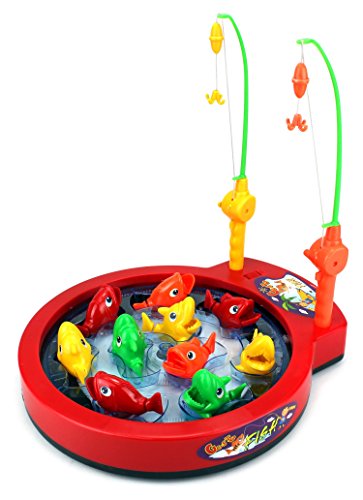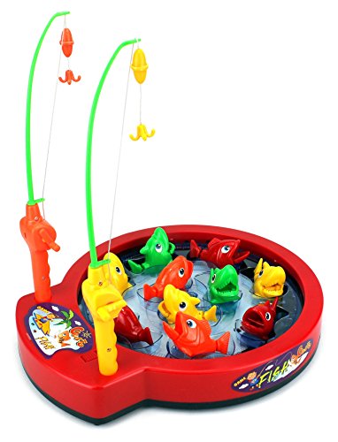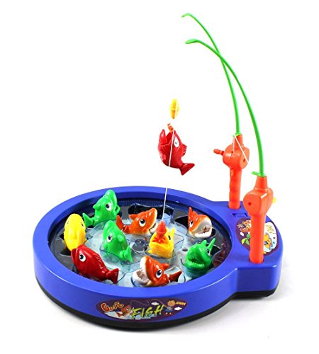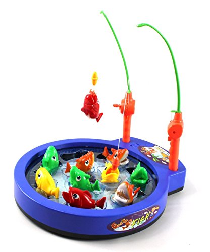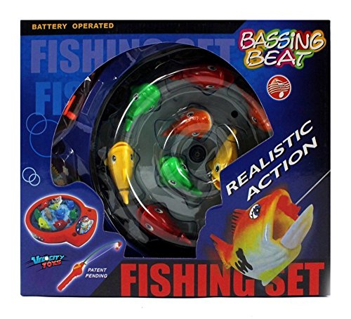 Product Description Fishing Game Toy for Kids Bass Beat Battery Operated Rotating Novelty Toy Fishing Game Set with 2 Fishing Rods, Sounds, Music, Brand New in Box 0