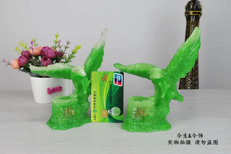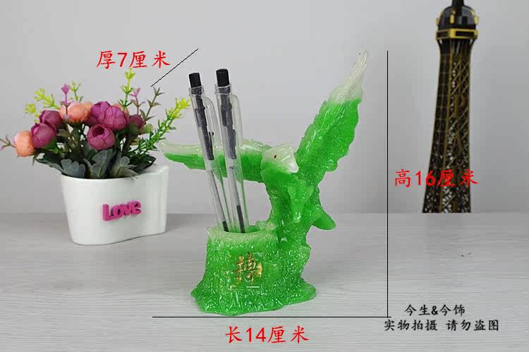 仿玉质老鹰笔筒摆件 书房桌面树脂装饰工艺品 送男朋友学生日礼品