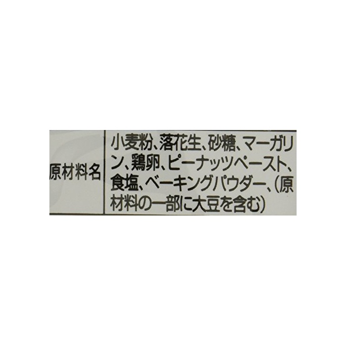 원재료:소맥분,땅콩,설탕,마가린,계란,피넛츠 Paste,식염,baking 파우더,(원재료의 일부에 대두를 포함한다)