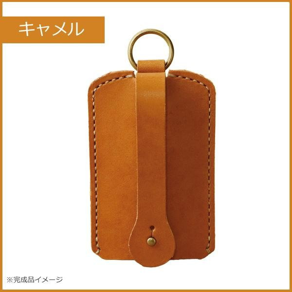 本体に鍵を収納し、使う時にすぐ引き出せるスマートなキーケースを作れるキットです。革は使うほどに味わい深くなるコンビヌメ革を使用。縫い穴はあけ済みなので、どなたでも簡単に手縫いをお楽しみいただけます。 |