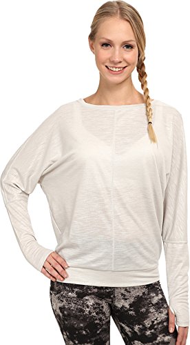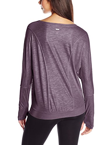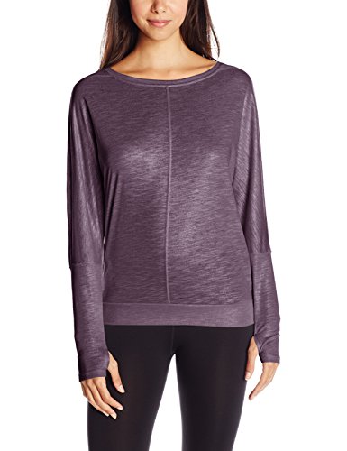 This long sleeve layering top has a relaxed fit and hits low at the hip. Designed with feminine shirring detail at back hem. Drapes beautifully over shoulders and boasts a flattering shape. Thumbholes at cuffs.Feature