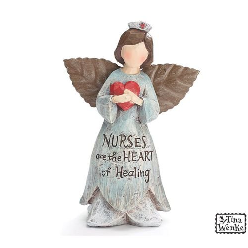 - The angel is wearing a nurse hat and is holding a red heart in her arms