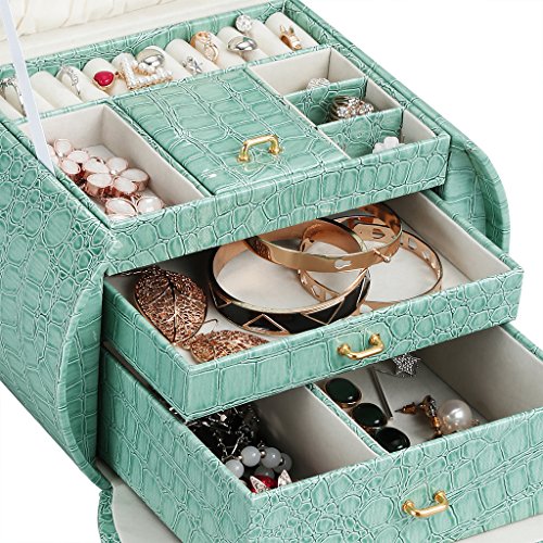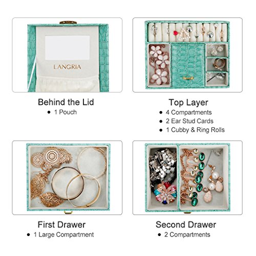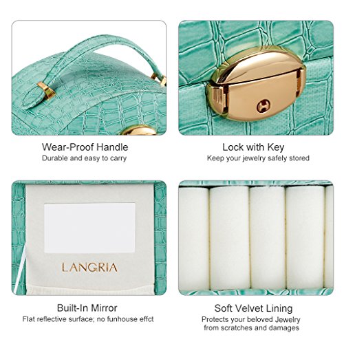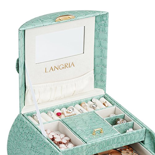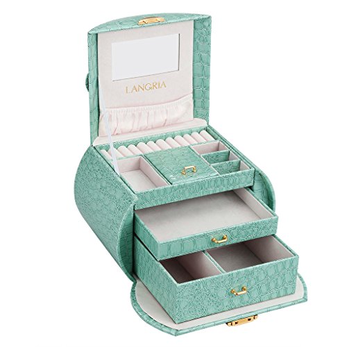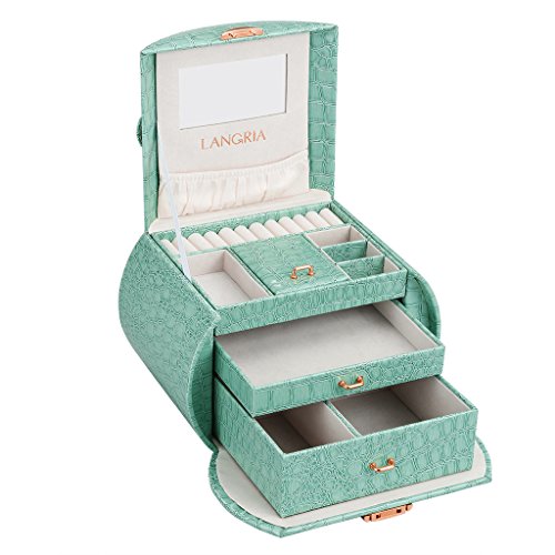 Studio : LANGRIA Publisher : LANGRIA Binding : Kitchen Product Description Tasteful jewelry box for perfect organization Store your beloved accessories and jewelry in this chic LANGRIA glossy jewelry box. It is made in a stylish green faux crocodile leather, which not only will look beautiful in your vanity desk or dressing room, but it will help you to find easily your accessories. Save some time when getting ready with this fabulous jewelry box organizer.