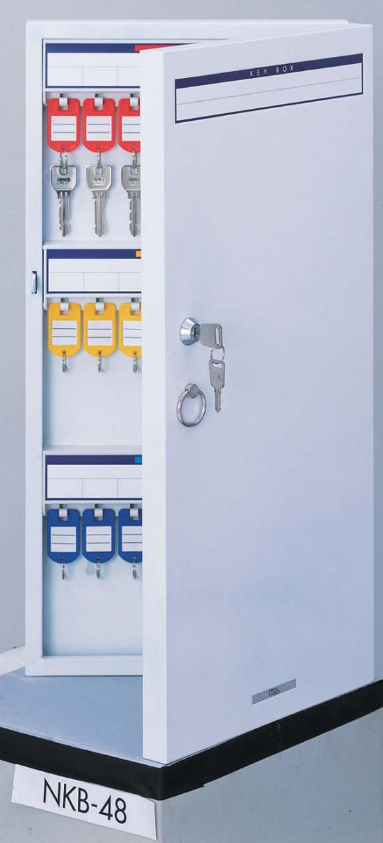 壁に掛けて、鍵をしっかりと管理します。ホルダーの色がカラー分類されているので、鍵の保存・整理がスムーズです。折りたたんで持ち歩くことも可能です。 ※サプライヤー直送品 ご注文後3~4営業日後の出荷となります【商品名】KS-48 ナカバヤシ キーステーション KSタイプ 48個収容