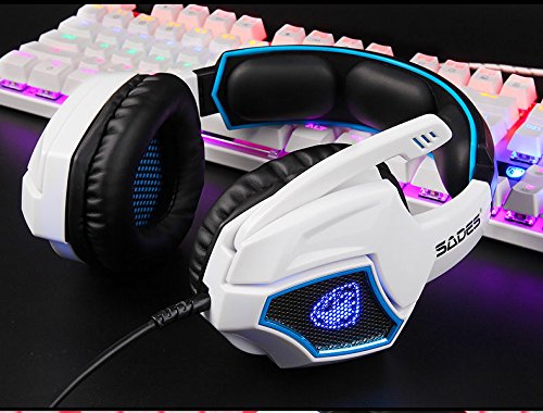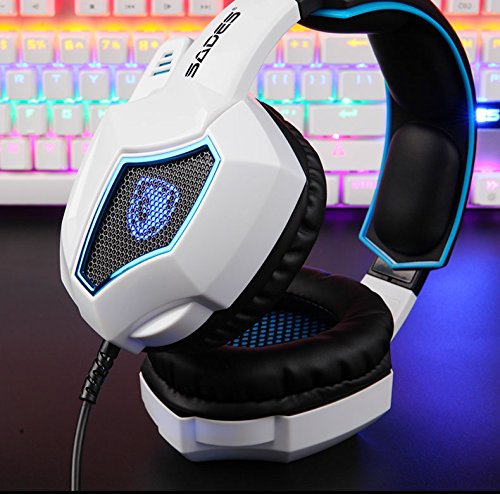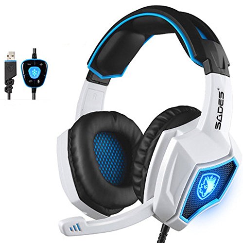 Yanni 2016 Sades SPIRITWOLF USB Version 7.1 Surround Sound Stereo Gaming Headset PC Computer Headphones Over Ear with Mic, Noise Reduction, Volume Control, LED For Gamers(White Black)