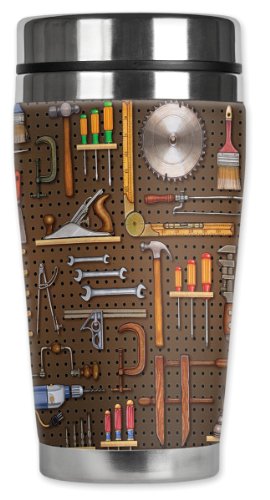 Mugzie Brown Tool Pegboard Travel Mug with Insulated Wetsuit Cover, 16 oz, Black