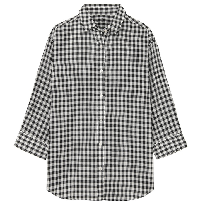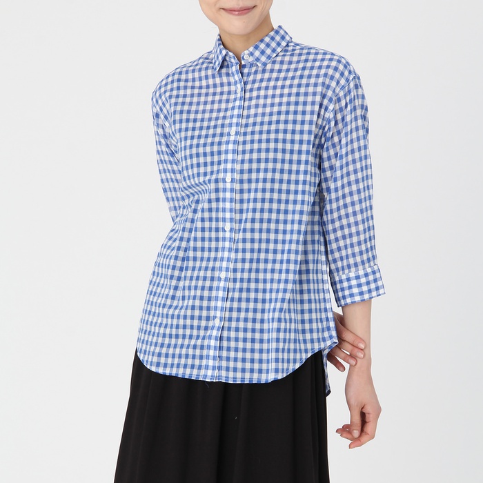 원본상품명: オガニックコットン撚ガゼチェック七分袖シャツ 婦人SブルSALE