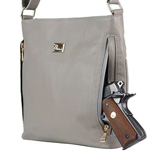 -. Brand : Miss Conceal -. Department : womens -. Feature : RICH PEBBLED, 100% GENUINE LEATHER - Accented with front horizontal zippered pocket and a classy leather tassel / Branded with a signature Miss Conceal emblem on the back / EASELY ACCESSABLE INTERIOR - Top zippered access / Fully lined 100% polyester interior features two open slip pockets and a zippered P.R.Ivacy pocket / Interior leather lanyard with brass swivel snap for keys / DOUBLE PLY, ADJUSTABLE CROSSBODY STRAP - Strap measures 25" - 47" x 1" wide (Drop 11" - 22.5") / Quality, polished brass hardware / AMBIDEXTROUS CONCEALMENT POCKET - Access to gun pocket on both ends / Includes universal elastic, nylon holster / Concealment pocket measures 7" tall x 9.5" 12" wide / PERFECT SIZE - Dimensions: 11" tall x 11" wide x 2" deep / ** You may notice that the concealment zippers have a locking zipper head. Miss Conceal does not recommend their use. No keys are included. -. ProductGroup : Shoes -. ProductTypeName : HANDBAG -. Size : Medium Small -. Title : Concealed Carry Purse - The Katy Jo Crossbody by Miss Conceal - Genuine Leather