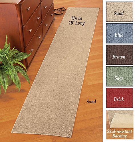 Studio : Collections Etc Publisher : Collections Etc Product Description This extra-long runner is perfect for protecting your high-traffic areas. Available in several stylish colors, these hooked runners are perfect for hallways, foyers and kitchens. Two different lengths let you pick the perfect rug for your space up to 10 feet long! Skid-resistant backing. Machine wash. Olefin. Colors available in Sand, Blue, Brown, Sage, or Brick. Sizes available in 20"W x 90"L, or 20"W x 120"L. 0