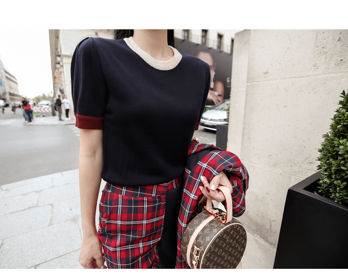소매의 배색 디테일로 유니크한 포인트를 주었어요