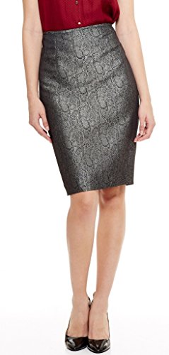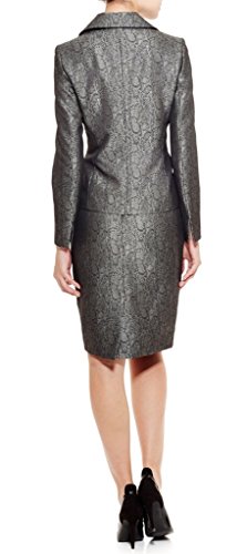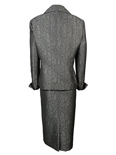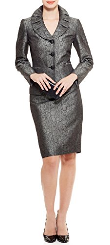 Le Suit Women's Three Button Petal Collar Brocade Jacket and Skirt Set