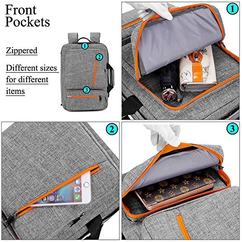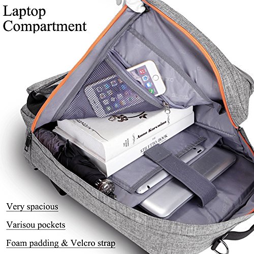 SOCKO 17 Inch Laptop Backpack with Side Handle and Shoulder Strap,Travel Bag Hiking Knapsack Rucksack College Student Shoulder Back Pack For Up to 17 Inches Laptop Notebook Computer, Grey-Orange