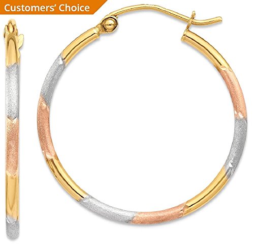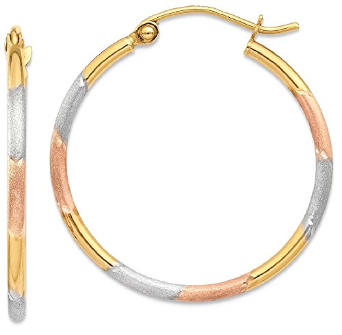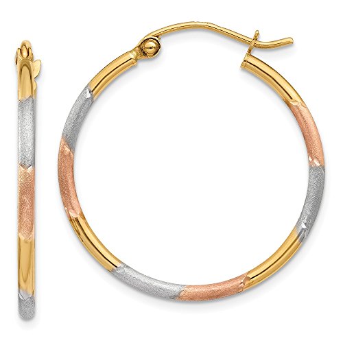 ICECARATS DESIGNER JEWELRY 14K YELLOW GOLD WHITE ROSE 2X25MM HOOP EARRINGS EAR HOOPS SET FOR WOMEN