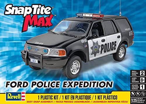 -. Binding : Toy -. Brand : Revell of Germany -. EAN : 0794628955278 -. Feature : This kit features an easy to assemble screw on chassis / Includes painted roof light bar, interior security screens and storage compartments / Soft, black tires / Can be constructed with model glue and paint if desired ; Glue and paint is not required / SnapTite Construction means no glue or paint required -. IsAdultProduct : 0 -. IsAutographed : 0 -. IsMemorabilia : 0 -. ItemPartNumber : RVM1972 -. Label : Revell -. Manufacturer : Revell -. Model : 85-1972 -. MPN : RVM1972 -. PackageQuantity : 1 -. PartNumber : RVM1972 -. ProductGroup : Hobby -. ProductTypeName : HOBBIES -. Publisher : Revell -. Studio : Revell -. Title : Revell SnapTite Ford Expedition Police SSV Plastic Model Kit -. UPC : 781624703514 -. Warranty : Missing or damaged parts replaced