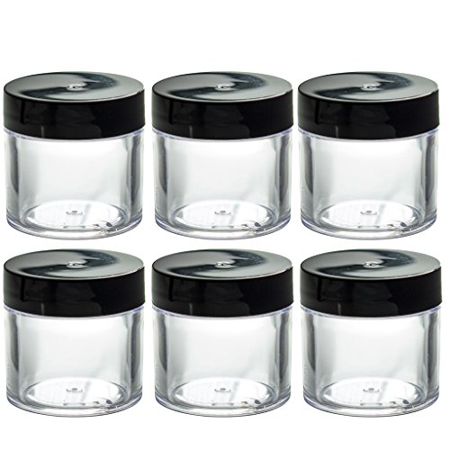 Clear Thick Wall Acrylic Travel Refillable Pot Container Jar - 1 oz / 30 ml (6 pack) + Spatulas and Labels for Samples, Balms, Makeup and Cosmetics, Salves, Airtight and BPA Free