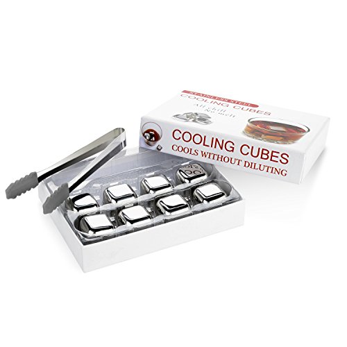 Whisky Stones,turata Chilling Rocks Stainless Steel Ice Cube beverage cooler glass-stones Gift Sets for Whiskey Wine Beer Soda Drinks Sets of 8 Pics