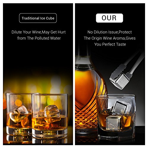 - ★ ENJOY A CLEAN WHISKEY TASTE -- Food-grade stainless steel chill your wine without dilution,unique gift for spirit drinkers,great partner for whiskey vodka, liqueurs, white wine and more!No more watery taste,just enjoy your clean taste of scotch ; Stainless steel material makes our chilling rocks durable,easy to wash and clean.