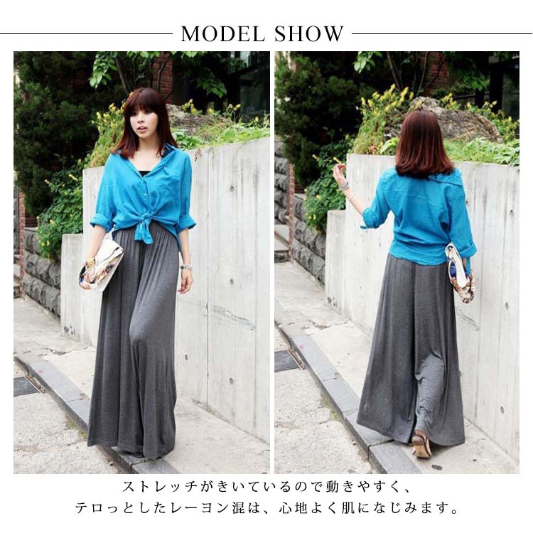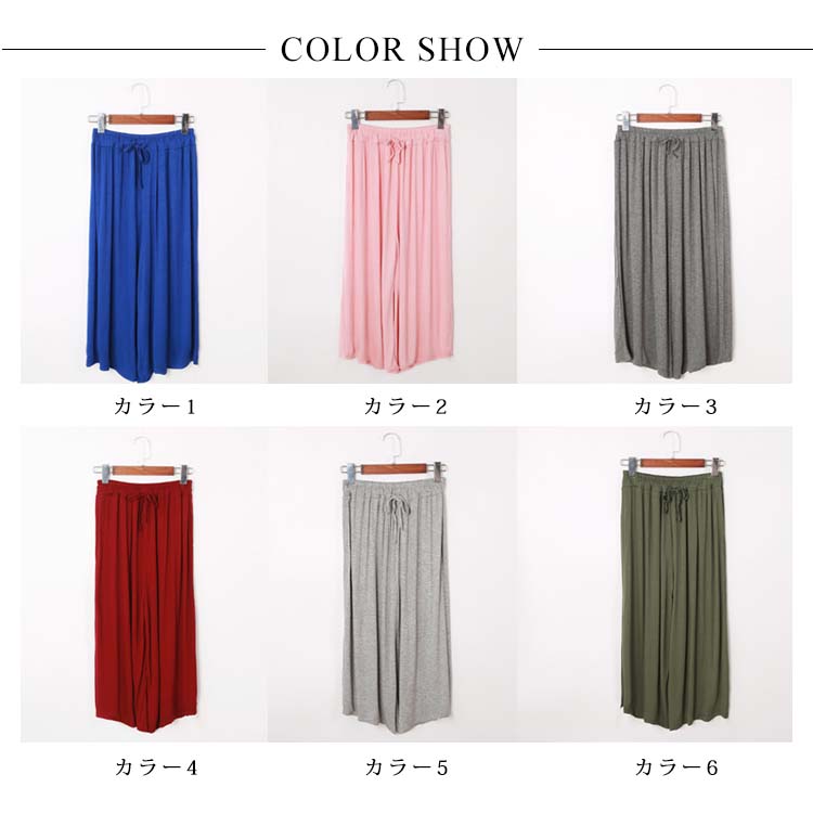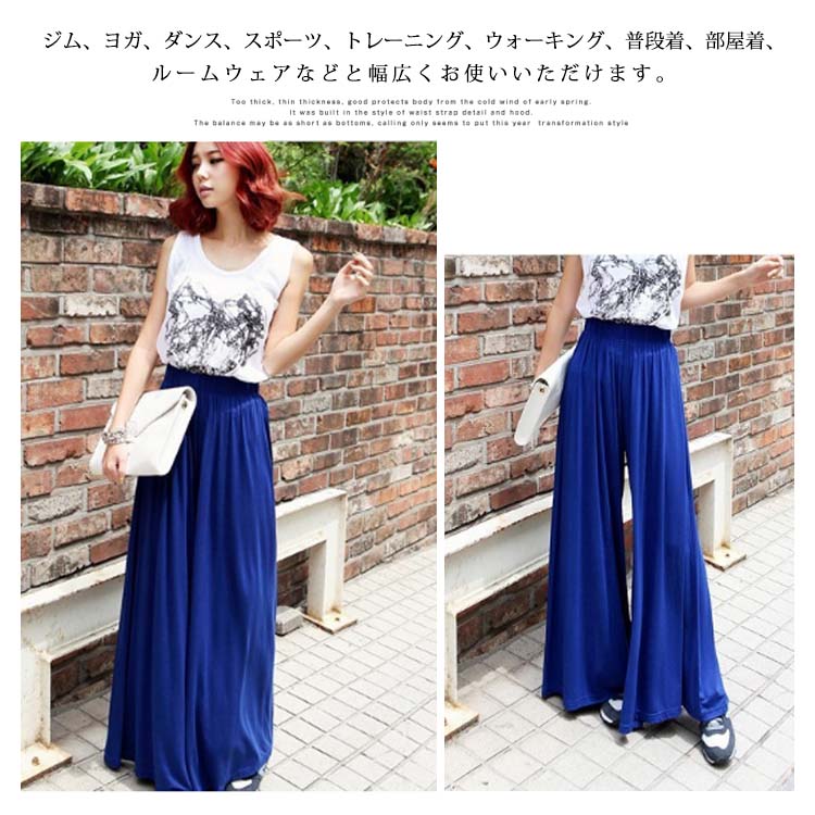 | 優美なヨガスタイルを演出してくれる、美脚フレアワイドパンツ。ストレッチがきいているので動きやすく、 テロっとしたレーヨン混は、心地よく肌になじみます。 ゴム仕様ウエストで締め付け感がありません。ジム、ヨガ、ダンス、スポーツ、トレーニング、ウォーキング、普段着、部屋着、ルームウェアなどと幅広くお使いいただけます。 | |