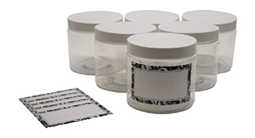 Clear 16 oz Plastic Jars with White Lids (6 pk) with Labels - PET Round Refillable Containers