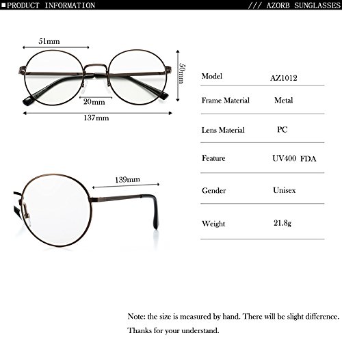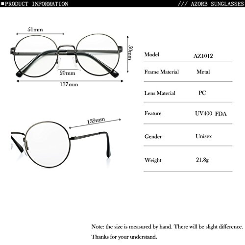 -. Brand : AZORB -. Department : unisex-adult -. Feature : 30 DAY MONEY BACK GUARANTEE-100% satisfaction guaranteed. That is our promise. So, if you're not completely happy with your purchase within the first 30 days, just feel free to contact the seller of AZORB. We without hesitation to solve the problem until satisfaction -. ProductGroup : Apparel -. ProductTypeName : EYEWEAR -. Size : 51mm -. Title : AZORB Non-prescription Round Clear Lens Glasses Circle Eyeglasses Frame