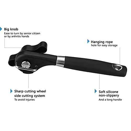 【Easy to use and Easy to Clean】Easy to turn knob for effortless operation. Comfortable handles and easy operation make it a must-have tool for every kitchen. Opens cans easily and comfortably. Stainless blades do not come into contact with food in can so there is no rust, and no risk of contamination and just needs to be wiped clean.