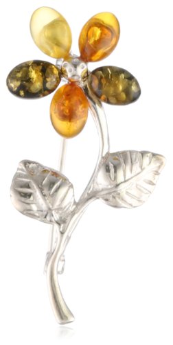 - Title : Sterling Silver and Multicolor Amber Flower Pin